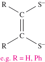 The common feature of the ligands in these complexes is that they are π-donors, with no π-donating or π-accepting properties. In [Li(TMEDA)]2[Zr(SC6H4-4-Me)6] (TMEDA = Me2NCH2CH2NMe2), the [Zr(SC6H4-4-Me)6]2- ion also has a distorted trigonal prismatic structure. Although thiolate ligands are usually weak π-donor ligands, it has been suggested that the cation–anion interactions in crystalline [Li(TMEDA)]2[Zr(SC6H4-4-Me)6] result in the RS- ligands behaving only as σ-donors. Another related group of trigonal prismatic d0, d1 or d2 metal complexes contain the dithiolate ligands, 1.3, and include [Mo(S2C2H2)3] and [Re(S2C2PH2)3] (Figure 1.1b).