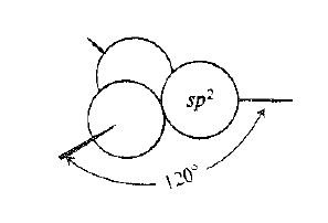 الشكل (1.1) : المدارات الذرية: المدارات Sp2 الهجينة. وجهت المحاور باتجاه رؤوس مثلث متساوي الاضلاع.