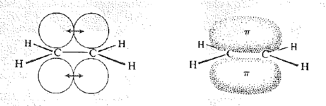 الشكل 1.3 : جزء الايتيلين : الرابطة المزدوجة كربون – كربون يعطي تراكب المدارات p الرابطة π ، توجد السحابة π