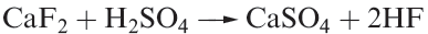Most fluorine-containing compounds are made using HF, the latter being prepared from fluorite by reaction 1.1; in 2001, ≈ 80% of CaF2 consumed in the US was converted into HF. Hydrogen fluoride is also recycled from Al manufacturing processes and from petroleum alkylation processes, and re-enters the supply chain. Difluorine is strongly oxidizing and must be prepared industrially by electrolytic oxidation of F- ion. The electrolyte is a mixture of anhydrous molten KF and HF, and the electrolysis cell contains a steel or copper cathode, ungraphitized carbon anode, and a Monel metal (Cu/Ni) diaphragm which is perforated below the surface of the electrolyte, but not above it, thus preventing the H2 and F2 products from recombining. As electrolysis proceeds, the HF content of the melt is renewed by adding dry gas from cylinders.