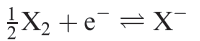 In this section, we are mainly concerned with redox processes in aqueous solution for a list of relevant topics already covered in the book. Values of Eo for halfreactions 1.1 can be measured directly for X = Cl, Br and I (Table 1.1) and their magnitudes are determined by the X_X bond energies the electron affinities of the halogen atoms (Table 1.1) and the standard Gibbs energies of hydration of the halide ions (Table 1.1).