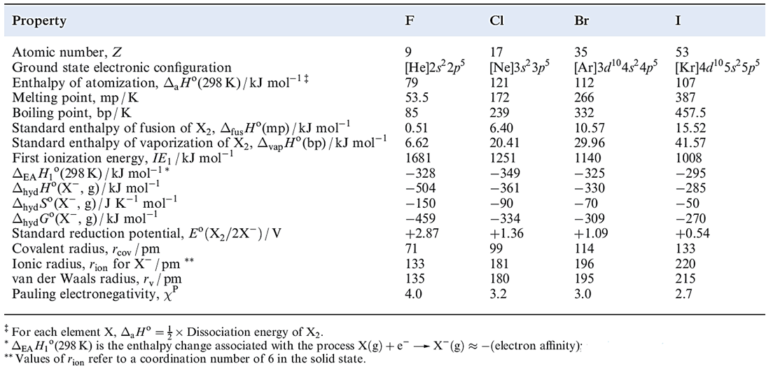Table 1.1 Some physical properties of fluorine, chlorine, bromine and iodine.