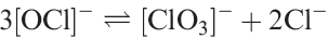 However, the fact that HOCl is a weak acid, while HClO3 and HCl are strong ones means that, in the presence of hydrogen ions, [OCl]- is protonated and this affects the position of equilibrium 1.4: HOCl is more stable with respect to disproportionation than [OCl]- .