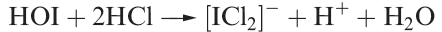However, in hydrochloric acid, HOI undergoes reaction 1.6.