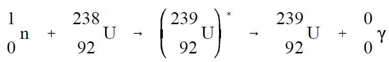 In radiative capture the incident neutron enters the target nucleus forming a compound nucleus. The compound nucleus then decays to its ground state by gamma emission. An example of a radiative capture reaction is shown below.