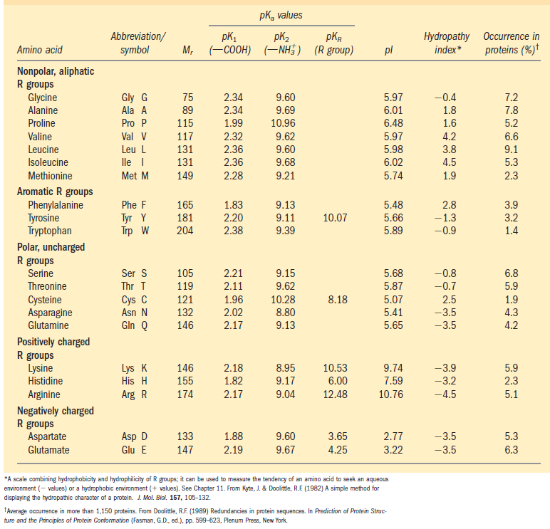 TABLE 1.1 Properties and Conventions Associated with the Common Amino Acids Found in Proteins
