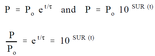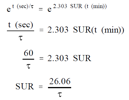 The reactor startup rate (SUR) is defined as the number of factors of ten that power changes in one minute. The units of SUR are powers of ten per minute, or decades per minute (DPM). Equation (1-1) shows the relationship between reactor power and startup rate.
