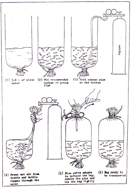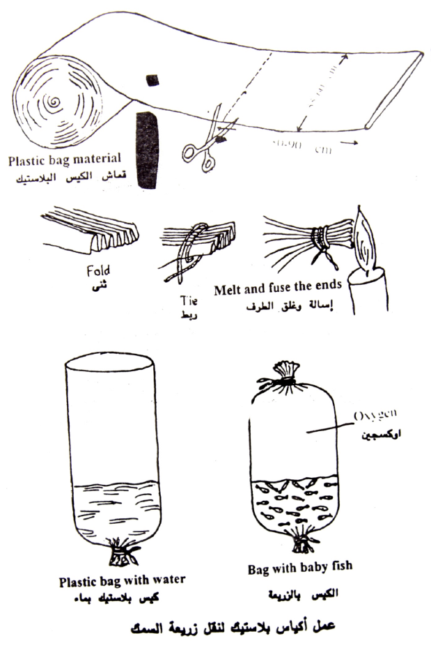 نقل زريعة الاسماك المعبأة في اكياس بلاستيك