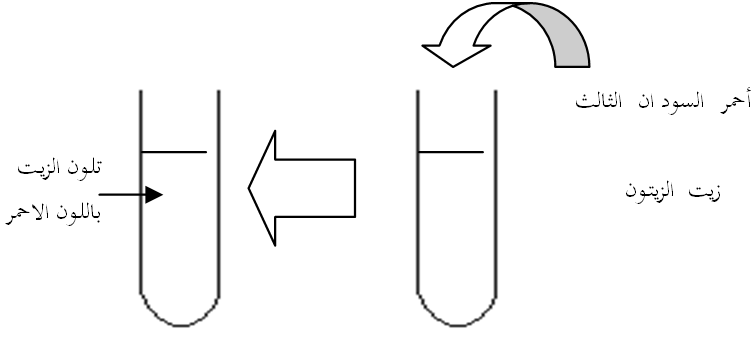 الملاحظة : يتلون زيت الزيتون باللون الأحمر.