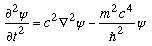 The Klein-Gordon equation was the first relativistic wave equation. The equation can be written: