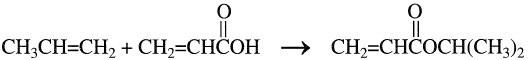 Isopropyl acrylate is produced by an acid catalyzed addition reaction of acrylic acid to propylene. The reaction occurs in the liquid phase at about 100°C: