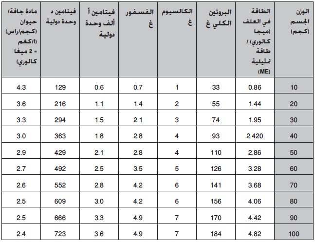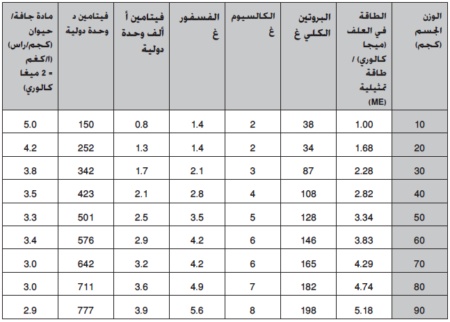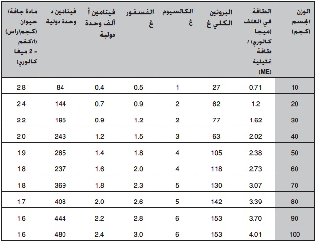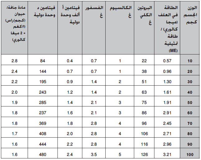 2- معدل وزن القطيع، حيث أن ذات الوزن الأعلى تحتاج إلى غذاء أكثر من تلك التي وزنها أقل (التسمين).
