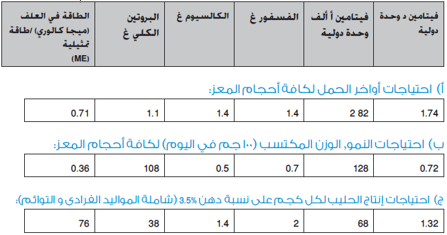 احتياجات المعز اليومية للإدامة: