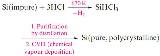 Of compounds of the type SiHnX4-n (X= halogen, n = 1–3), SiHCl3 is of particular importance in the purification of Si in the semiconductor industry. The success of the second step in below scheme depends on the precursor being volatile. SiHCl3 (mp 145 K, bp 306K) is ideally suited to the process, as is SiH4 (mp 88K, bp 161 K).