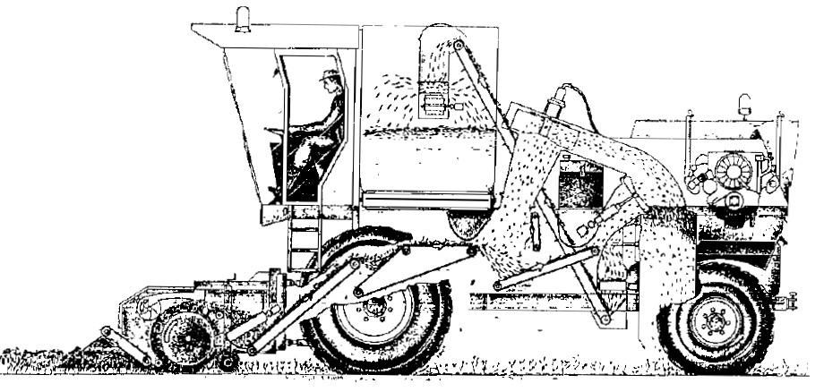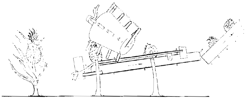 شكل (4) الة حصاد اناناس عن طريق ثني الثمرة بواسطة اسطوانة دوارة ذات اصابع على قضيب كسر ونقلها على سيور الى خزان الالة.