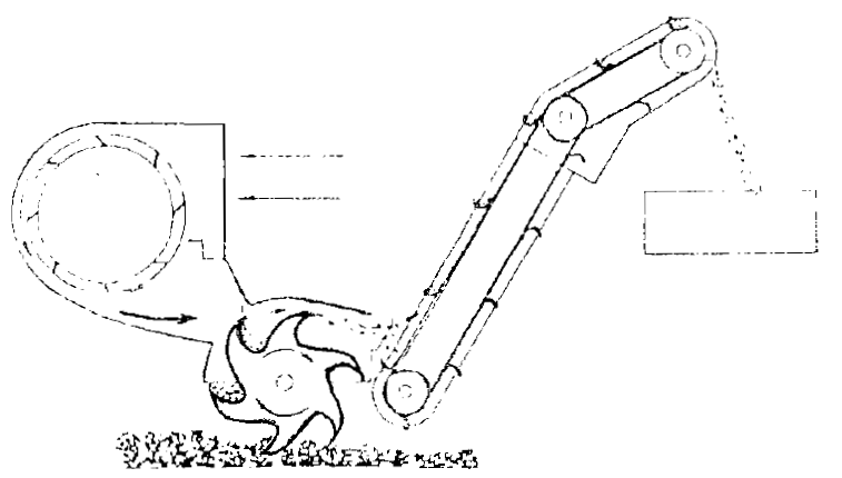 شكل (2) رسم تخطيطي لألة تقوم بحصاد الخضر بدون نزع النباتات من التربة وتستخدم تيار من الهواء للمساعدة في نقل المحصول.