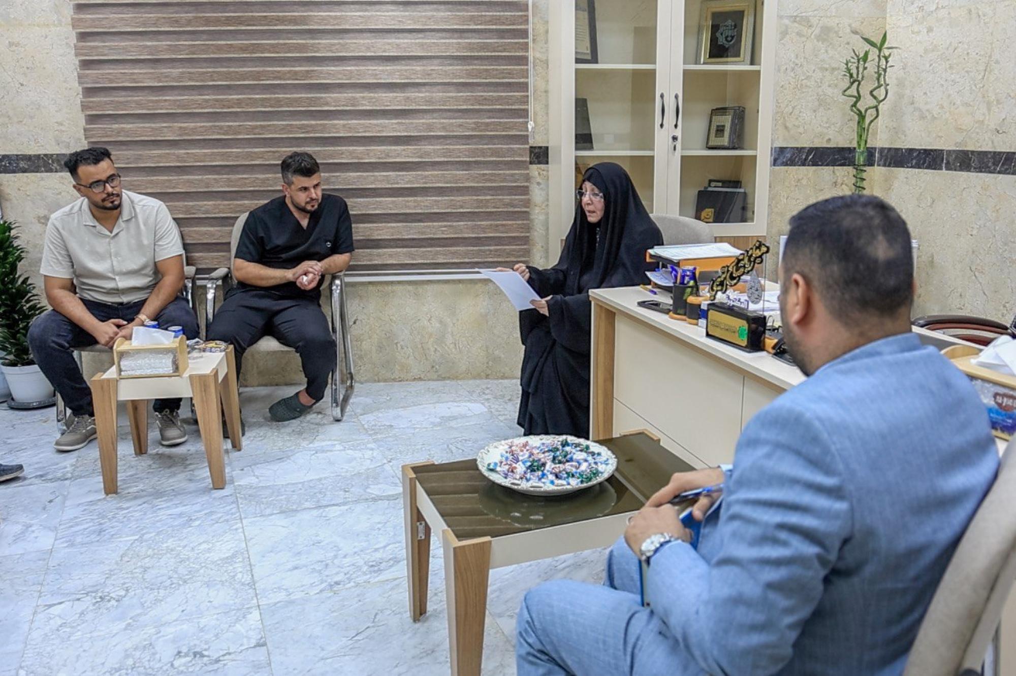 عقد قسمُ الشؤون الطبّية في العتبة العبّاسية المقدّسة، اجتماعه الدوريّ مع أطبّاء القسم لبحث سبل تطوير العمل، والارتقاء به في المجالات الطبّية والصحّية. وقالت رئيسةُ القسم الدكتورة هيفاء التميمي، إن "الاجتماع عُقِد في مركز السيد جعفر الحلي الصحّي بحضور أطبّاء القسم، وذلك لمناقشة سبل تطوير العمل وتحسين الخدمات الطبّية المقدّمة". وأضافت أن "الاجتماع تناول أهمّ الموضوعات المتعلّقة بتطوير الخدمات الصحية المقدّمة للزائرين، وخرجنا بعددٍ من التوصيات والمعطيات التي من شأنها تعزيز جودة العمل الطبّي والخدمي في المراكز الصحّية، بما يُسهم في خدمة زائري الإمام الحسين وأخيه أبي الفضل العباس(عليهما السلام)".
