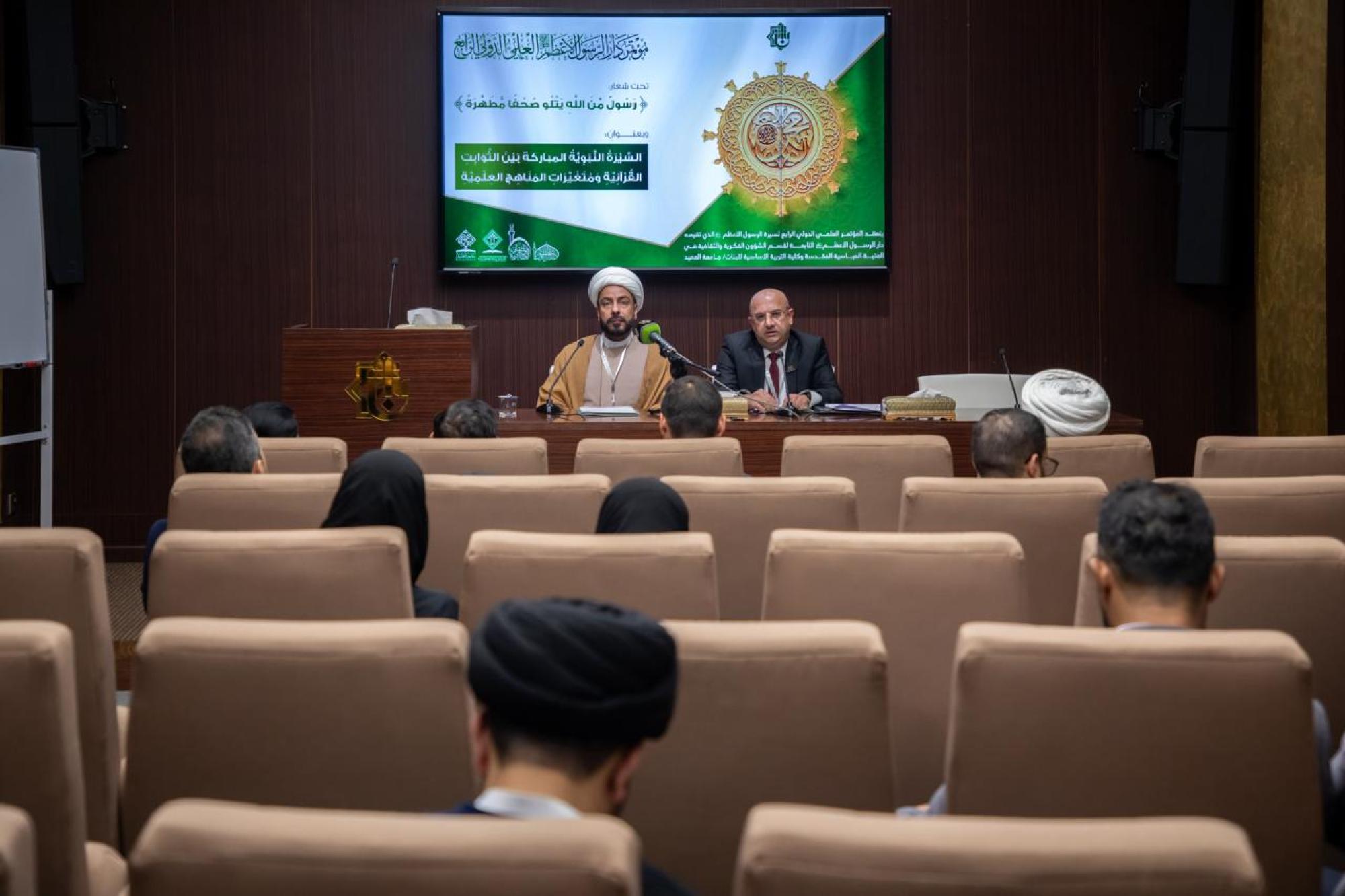 قدم الباحث الشيخ حسين محسن علي التميمي، بحثًا بعنوان (توظيف السيرة النبوية في بناء برامج التنمية البشرية: دراسة تحليلية تطبيقية)، ضمن فعاليات مؤتمر دار الرسول الأعظم (صلى الله عليه وآله) العلمي الدولي الرابع. وتنظم المؤتمر الدار التابعة لقسم الشؤون الفكرية والثقافية في العتبة العباسية المقدسة، وكلية التربية الأساسية للبنات في جامعة العميد، تحت عنوان (السيرة النبوية المباركة بين الثوابت القرآنية ومتغيرات المناهج العلمية)، وتستمر فعالياته مدة يومين. وذكر الباحث في ملخص بحثه أنّ "البحث يستعرض موضوع توظيف السيرة النبوية في بناء برامج التنمية البشرية، عبر دراسة تحليلية تطبيقية تسلط الضوء على الجوانب العملية المستوحاة من حياة النبي محمد (صلى الله عليه وآله)". وأضاف أنّ "البحث يهدف إلى استخراج المبادئ والقيم النبوية التي تعزز تطوير الذات وبناء القدرات الشخصية والاجتماعية، مثل القيادة والتواصل الفعال، وإدارة الوقت، ويعتمد على تحليل النصوص التاريخية والشرعية لتقديم نموذج عملي قابل للتطبيق في برامج التنمية البشرية المعاصرة".