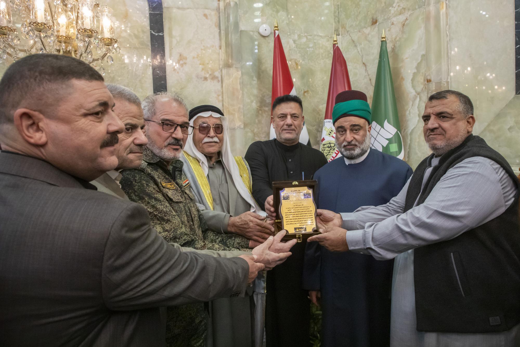 وأضاف "قدّمنا في هذا اللقاء راية مرقد السيّد محمد بن الإمام علي الهادي (عليهما السلام) وعددًا من دروع الشكر والتقدير، وفاءً وعرفانًا من أهالي بلد لخَدَمة العتبة العباسية المقدسة، تثمينًا لتعاونهم الكبير مع موكبنا السنوي الذي يُقام في مدينة كربلاء المقدسة."