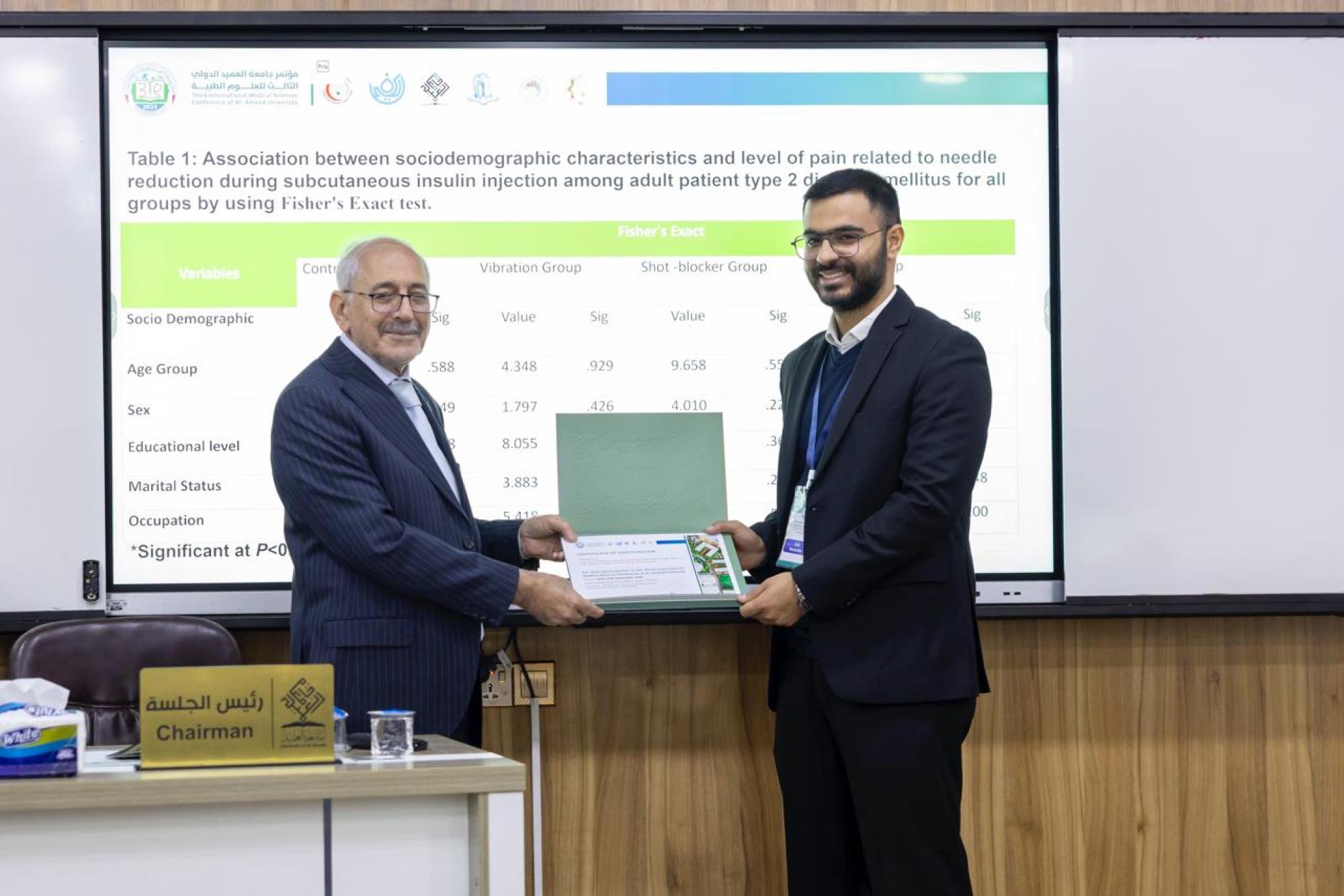 شهدت فعاليات اليوم الثاني من مؤتمر جامعة العميد الدولي الثالث للعلوم الطبية، تكريم الباحثين المشاركين في المؤتمر. وتقيم المؤتمر جامعةُ العميد برعاية العتبة العباسية المقدسة، وبالتعاون مع جامعة الكفيل ومستشفى الكفيل التخصُّصي، تحت شعار (تكامل العلوم الطبِّية في خدمة المجتمع)، بمشاركة أكاديميِّين وباحثين من داخل العراق وخارجه، ويستمر مدة يومين. وشهدت الجلسات البحثية للمؤتمر على مدى يومين مشاركة 200 بحث علمي لأكاديميين وباحثين مختصين في مجال التعليم الطبي من العراق و12 دولة أخرى، ويأتي التكريم تثمينًا لجهودهم العلمية.