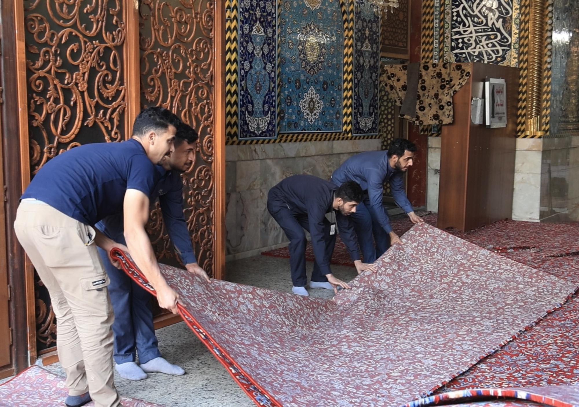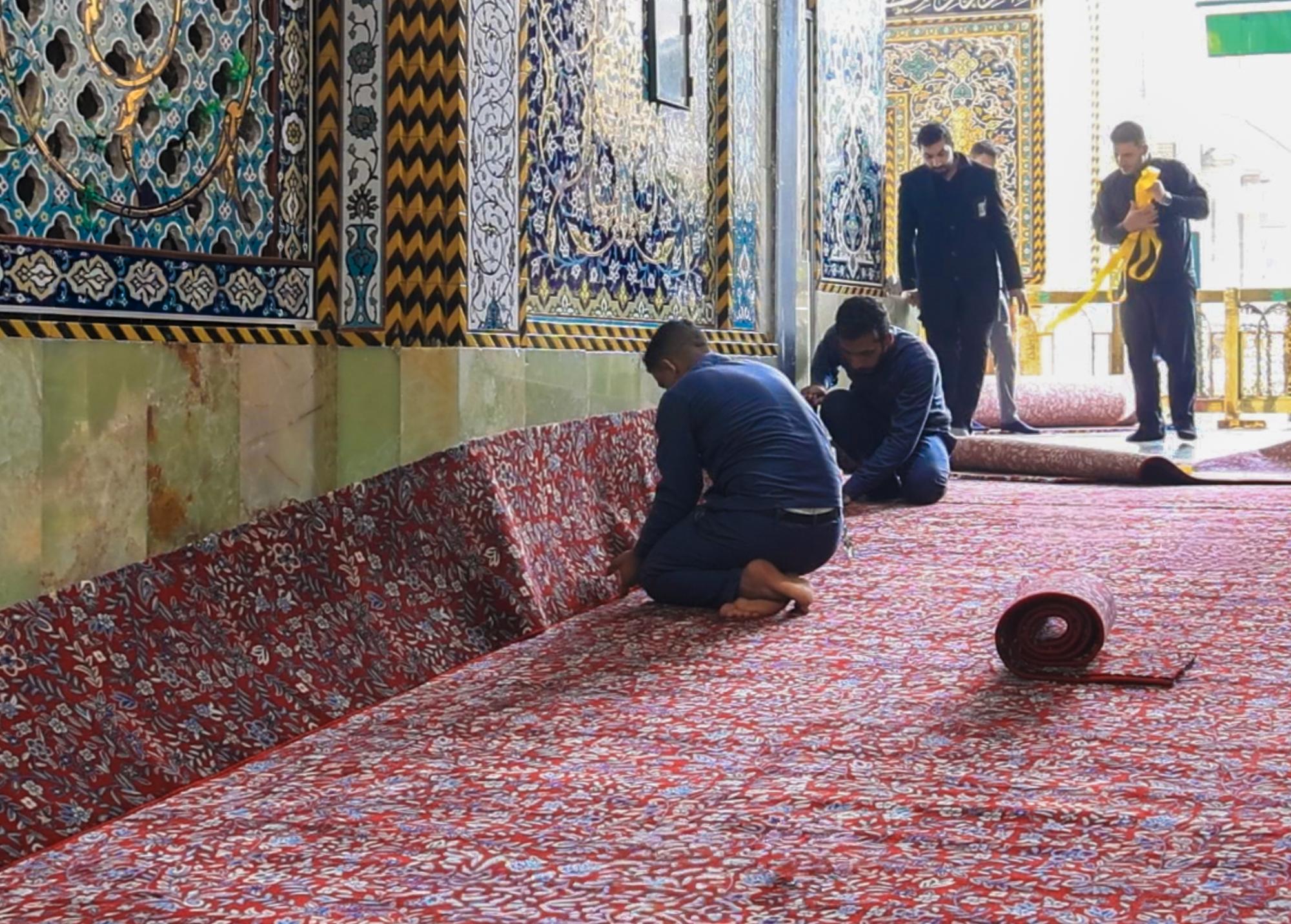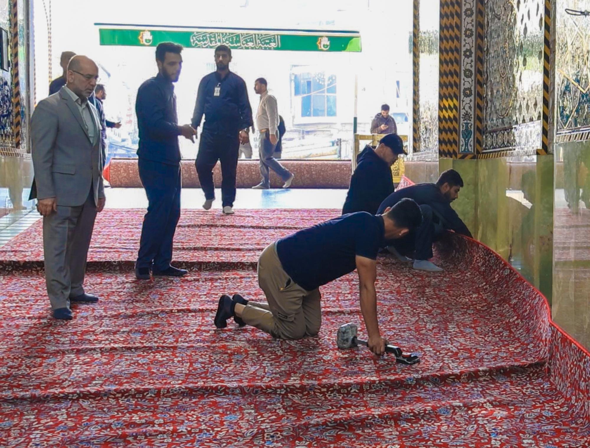 شرعت ملاكات العتبة العباسية المقدسة بأعمال فرش البوابات المؤدية لصحن مرقد أبي الفضل العبَّاس (عليه السلام) بالسجاد، ضمن جهودها لتوفير بيئة مريحة للزائرين. وأجري اختيار السجاد وفق مواصفات عالية تتحمل كثافة الزائرين وتتناسب مع قدسية المكان المطهر وتنفذ أعمال الفرش وفق خطة منظمة تعتمدها العتبة المقدسة؛ بهدف الارتقاء بمستوى الخدمات المقدمة، وتحسين الانسيابية داخل الحرم الشريف، إضافةً إلى تحقيق أعلى درجات النظافة.