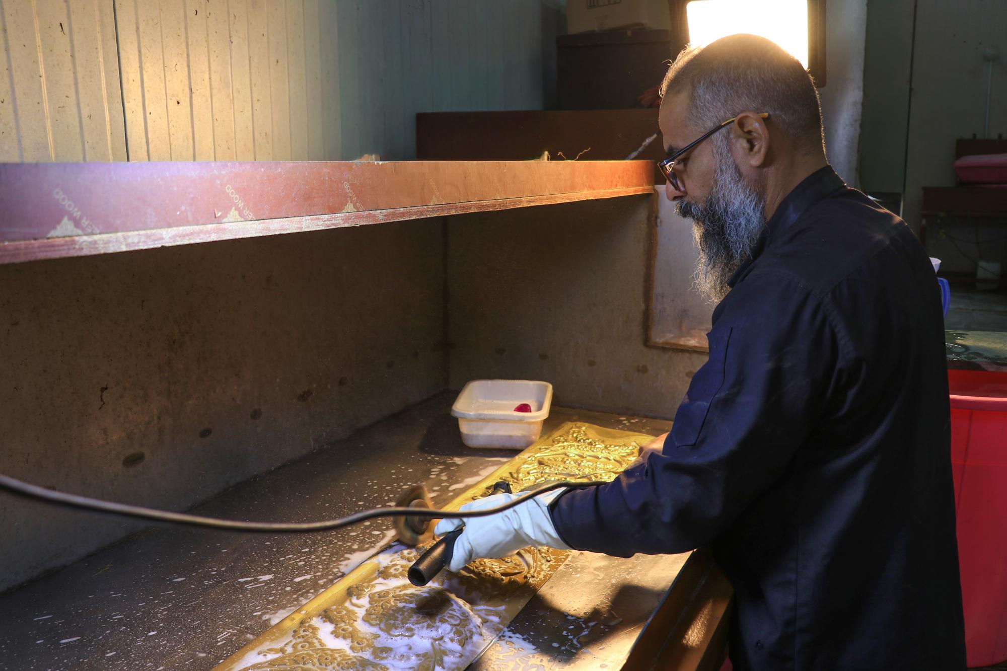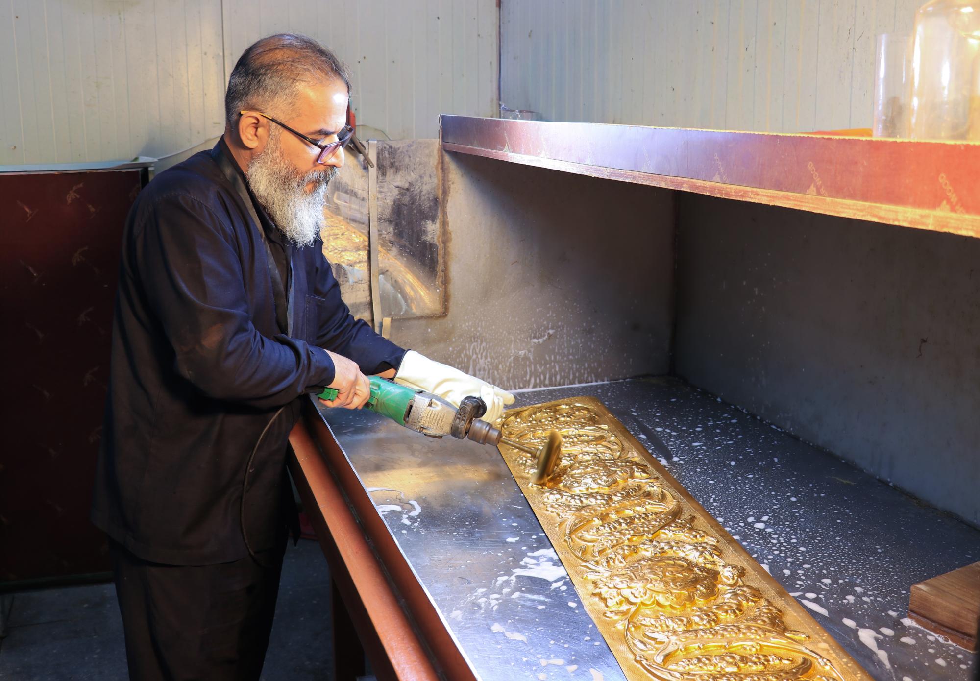 قسم صناعة الشبابيك يشرع بتذهيب شباك إحدى نوافذ حرم مرقد أبي الفضل العباس (عليه السلام)