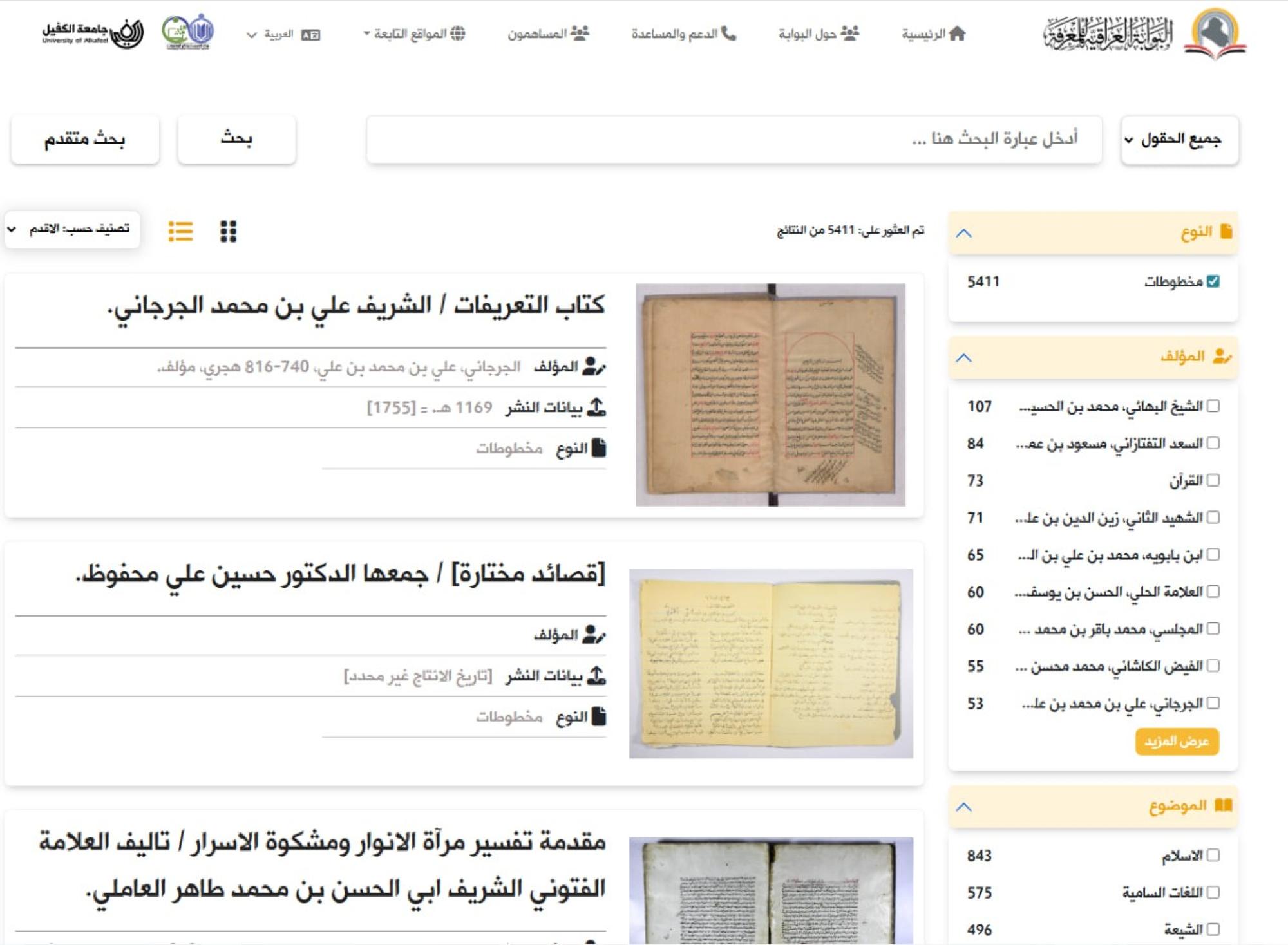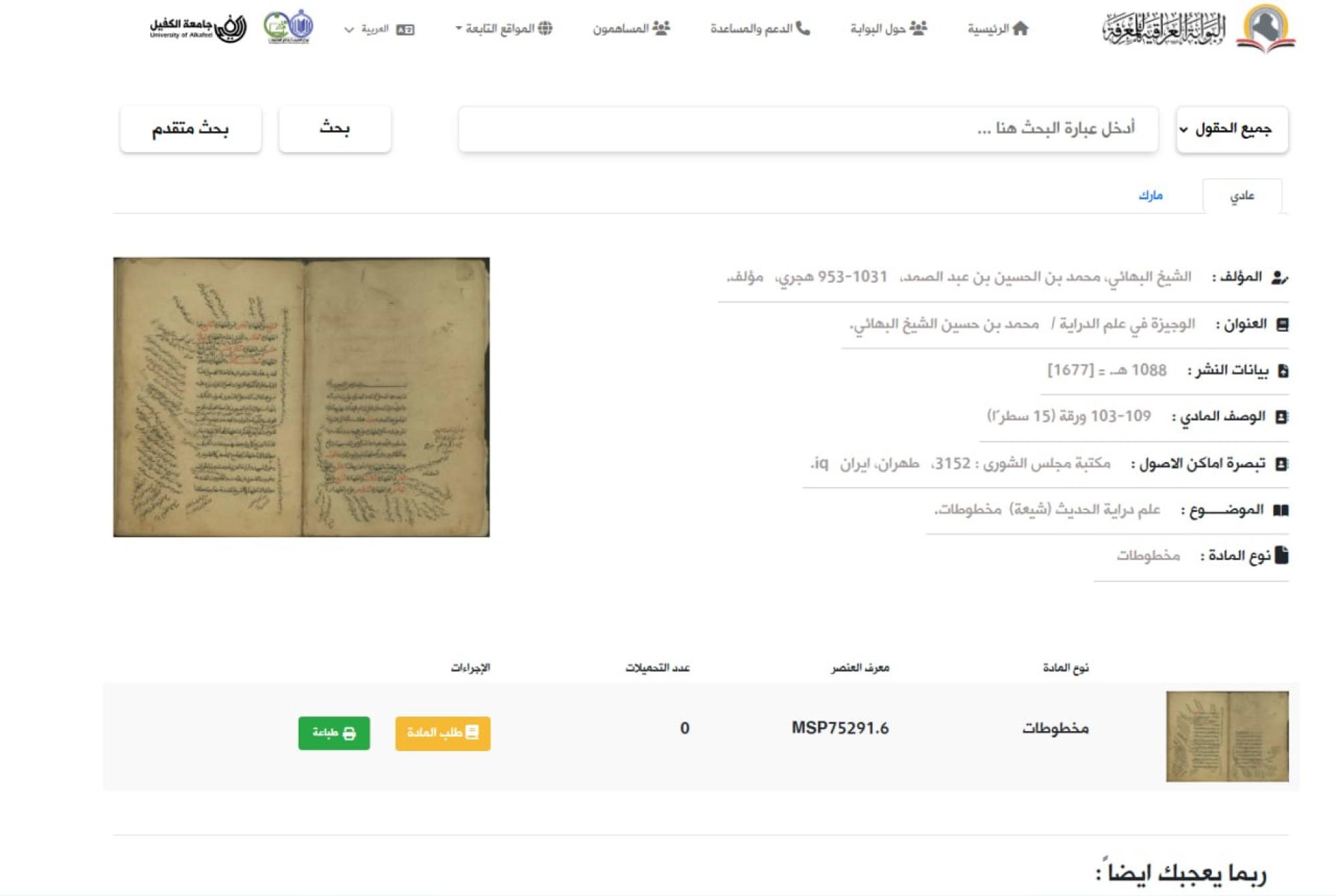 أنجز قسم الشؤون الفكرية والثقافية في العتبة العباسية المقدسة، فهرسة أكثر من 5000 مخطوطة في البوابة العراقية للمعرفة، وفق معيار RDA. وينفذ الأعمال الخاصة بالبوابة مركز الفهرسة ونظم المعلومات التابع للقسم، وتتضمن إدارة المحتوى وتنظيمه وضمان اتساق البيانات وجودتها. وقال مدير المركز، السيّد حسنين الموسوي: إنَّ "المركز عمل على فهرسة أكثر من 5000 مخطوطة وفق معيار RDA، والذي يمثل خطوة كبيرة في مسار حماية التراث المخطوط وتحويله إلى بيانات رقمية منظَّمة قابلة للبحث والاستخدام الأكاديمي الواسع". وأضاف، أنَّ "اعتماد معيار RDA في فهرسة المخطوطات لا يُعد تحديثًا تقنيًّا فحسب، بل هو نقلة معرفية تعزز من قيمة التراث وتُسهل على الباحثين الوصول إليه".