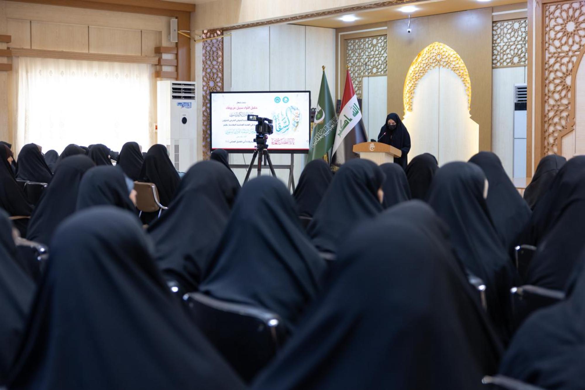 اختتمت العتبةُ العبّاسية المقدّسة فعّاليات مهرجان السقّاء القرآني السنويّ، بنسخته الخامسة في محافظة النجف الأشرف. ونظّم المهرجانَ معهدُ القرآن الكريم النسويّ التابع لمكتب المتولّي الشرعيّ للشؤون النسوية في العتبة المقدّسة، تحت شعار (حاملُ اللواءِ سبيلُ عزٍّ ووفاء). وشهدت فعّاليات المهرجان كلمةً لمسؤولة المعهد السيدة منار الجبوري، أكّدت فيها أنّ مهرجان السقّاء القرآنيّ يمثّل محطّةً سنويةً لإحياء سيرة أبي الفضل العباس(عليه السلام)، واستحضار قيم الوفاء والتضحية والإيمان الراسخ التي جسّدها في واقعة الطفّ. وأشارت إلى أنّ شخصية أبي الفضل العباس(عليه السلام) تمثّل أنموذجًا في نافذة البصيرة وصلابة الإيمان، مؤكّدةً أنّ استذكار هذه القيم يعزّز الوعي العقائدي والروحي لدى المشاركات. وتضمّنت الفعّاليات كذلك انعقاد جلسةٍ بحثية، نوقشت خلالها البحوثُ الثلاثة الفائزة ضمن المسابقة البحثية للمهرجان، وتقديم أوبريت بعنوان (نهر الوفاء)، جسّد مواقف أبي الفضل العباس(عليه السلام) في واقعة الطفّ، وعرض تقريرٍ مصوّر عن مجلّة (نفحات) الصادرة عن المعهد، إضافة إلى تلاوةٍ جماعيّة وتكريم حافظات القرآن الكريم؛ تقديرًا لجهودهنّ في حفظ كتاب الله، وتشجيعًا على استمرار مسيرتهنّ العلمية والقرآنية. واختُتِمت الفعّاليات بتكريم الباحثات الفائزات بالمسابقة البحثيّة، وجميع الأبحاث المقبولة بمنحها شهادات مشاركةٍ ضمن جهود المعهد لتعزيز البحث العلميّ، وتعميم قيم الولاء والعطاء والتضحية التي جسّدها أبي الفضل العباس(عليه السلام)، وتشجيع الباحثات على مواصلة التفاعل العلميّ والثقافي مع تراثه المبارك.