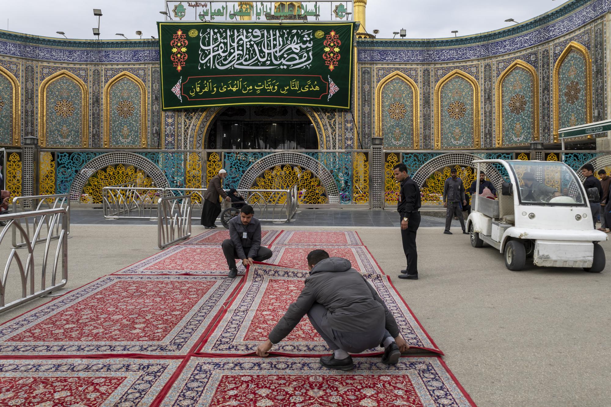 يكثف قسم الشؤون الخدمية في العتبة العباسية المقدسة جهوده لخدمة زائري مرقد أبي الفضل العباس (عليه السلام) في ليلة الجمعة المباركة. يأتي ذلك عبر تنفيذ مجموعة من الأعمال الخدمية التي تهدف إلى توفير الأجواء المناسبة للزائرين الوافدين إلى مدينة كربلاء المقدسة، وتتضمن تهيئة أماكن مخصصة لإفطار الزائرين، إلى جانب فرش السجاد في عدد من المداخل والساحات المحيطة بالمرقد الطاهر.