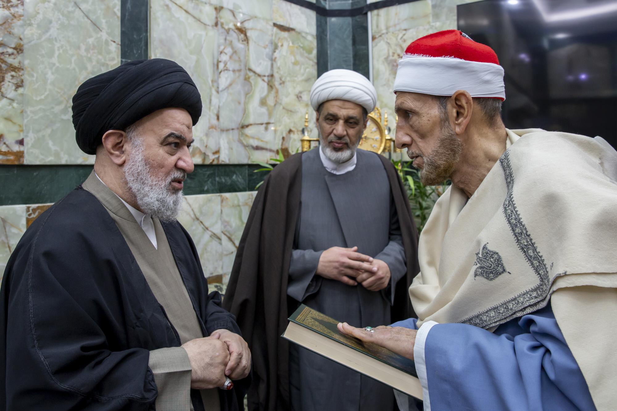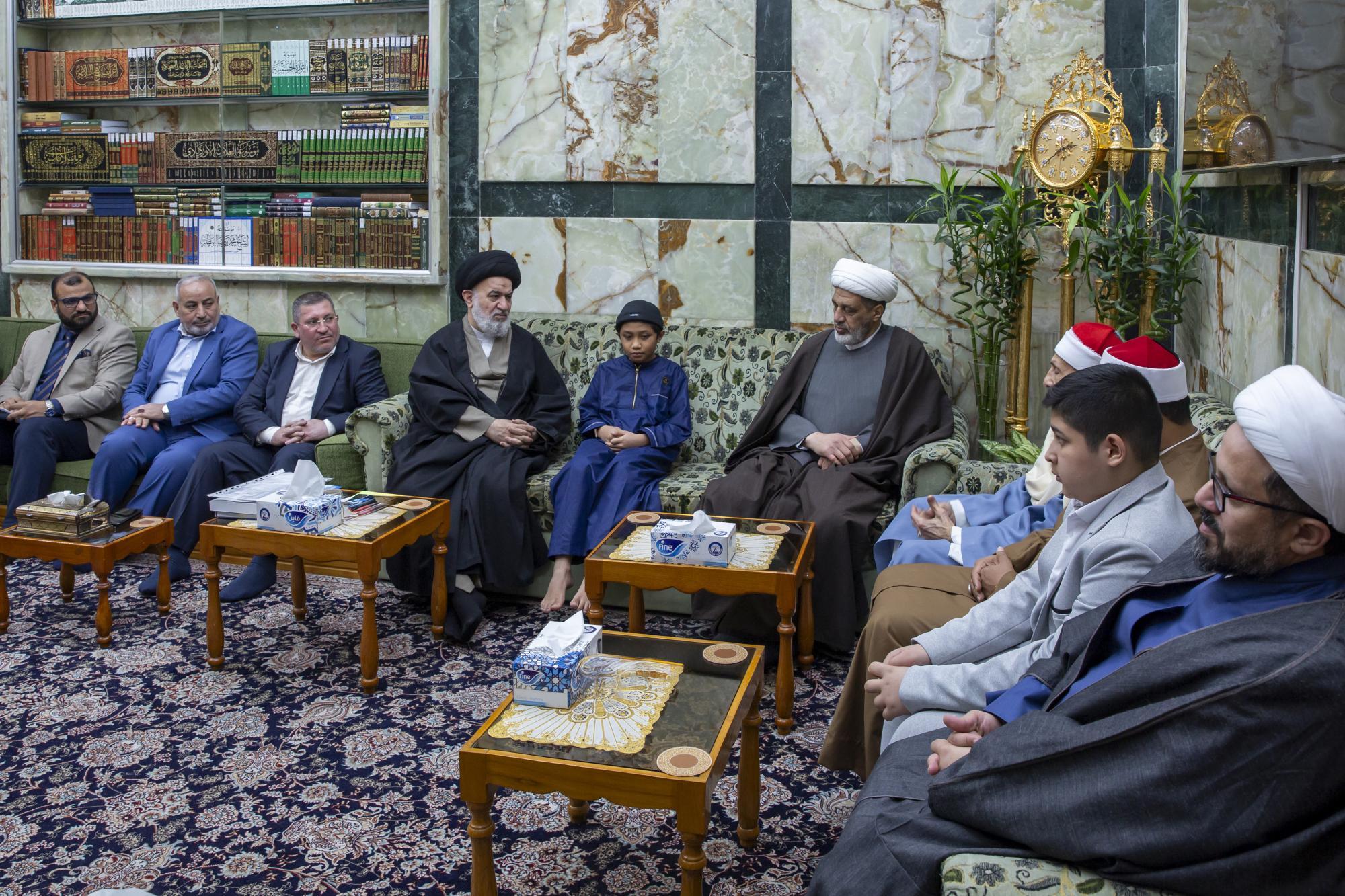 أوصى المتولي الشرعي للعتبة العباسية المقدسة سماحة العلامة السيد أحمد الصافي، بالعمل المستمر على إشاعة ثقافة القرآن الكريم وإيصالها للعالم أجمع. جاء ذلك في أثناء استقبال سماحته لجنة التحكيم والفائزين في مسابقة جائزة العميد الدولية الثالثة لتلاوة القرآن الكريم، التي يقيمها المجمع العلمي للقرآن الكريم في العتبة المقدسة. وقال رئيس اللجنة التحكيمية الدكتور مشتاق العلي: "انتهينا من تصوير جائزة العميد وإعلان النتائج النهائية في أواخر شهر رمضان المبارك، واحتفى اليوم سماحة المتولي الشرعي بهذا المنجز الذي يُسجل للأمانة العامة للعتبة العباسية المقدسة، وقد التقى سماحته اللجنة التحكيمية والفائزين الثلاثة الأوائل في هذا الموسم من فئتي الكبار والفتية. وأضاف العلي، أنّ سماحة السيد الصافي أوصى الحكام والفائزين بزيادة دعم جهود إشاعة الثقافة القرآنية بما فيه الصالح للعوائل المسلمة والعالم أجمع. من جهته أشاد القارئ المصري الشيخ محمد بسيوني، بجهود إقامة مسابقة العميد القرآنية وحفاوة الاستقبال والضيافة، داعيًا بالتوفيق والسداد للقائمين عليها لما تحقق من خدمة للدين والمجتمع.