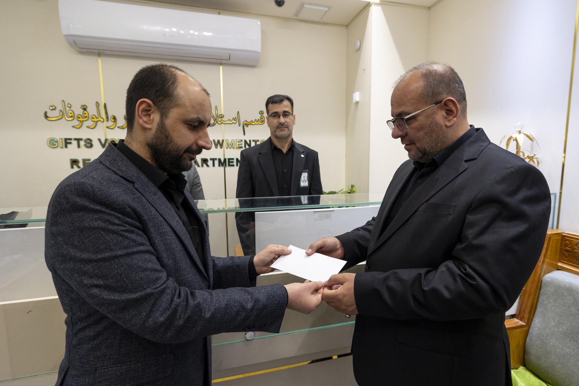 الأمين العام للعتبة العباسية المقدسة يشارك في حملة التبرع للشعبين الإيراني واللبناني